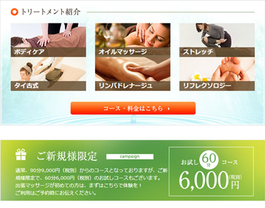 - ・ご新規様限定の60分6,000円のお試しコース
